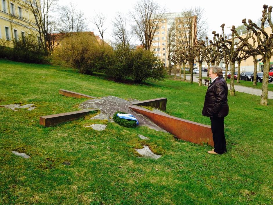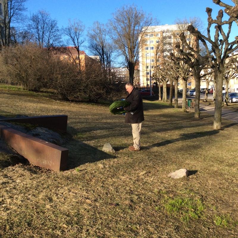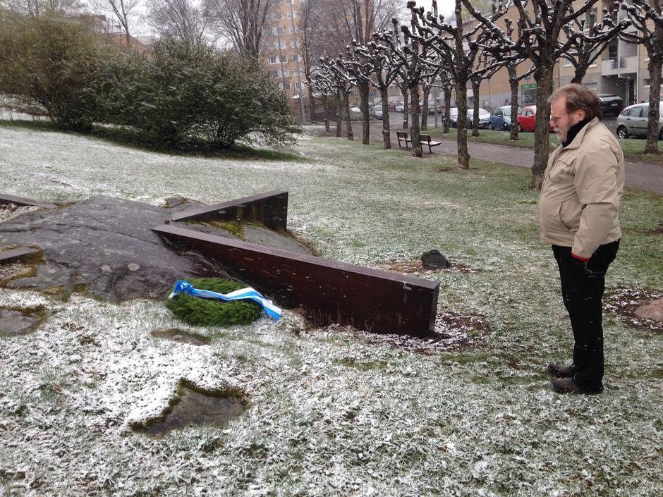Seppeleen lasku vakaumuksensa puolesta kuolleiden muistomerkillä 1.5.2017 Tsp jäsen Risto Kruskopf