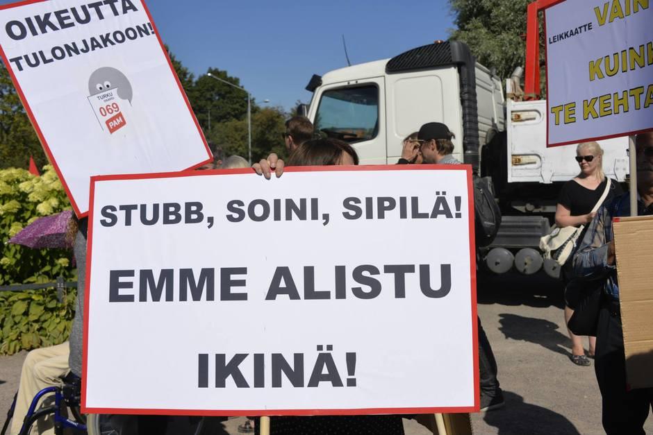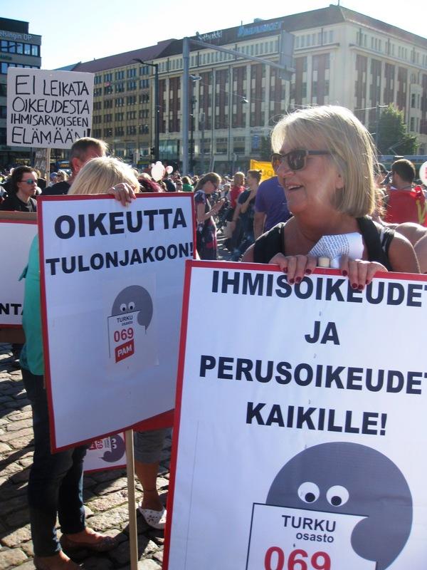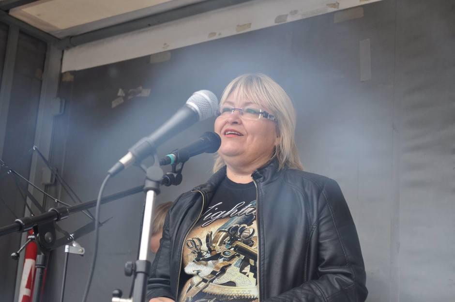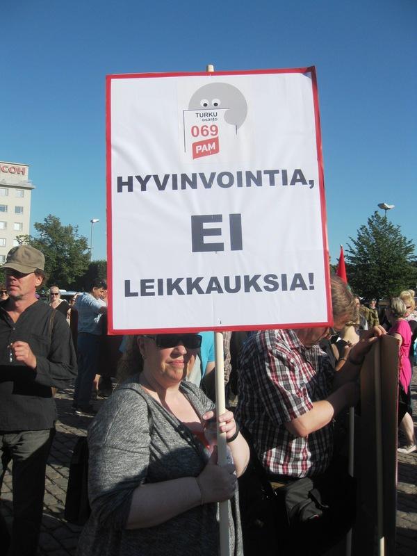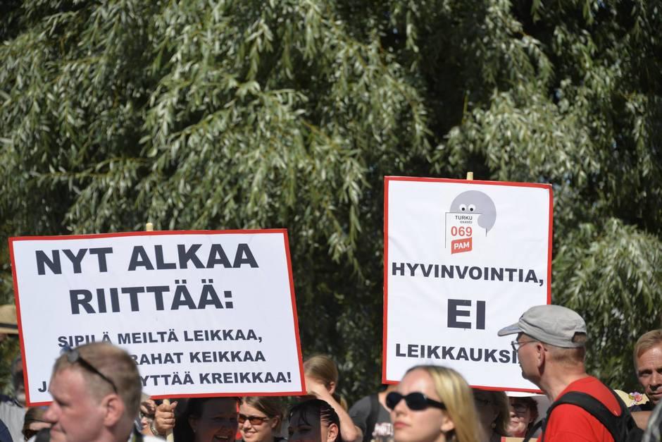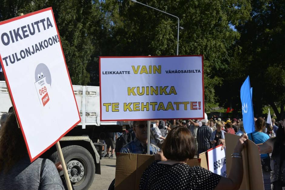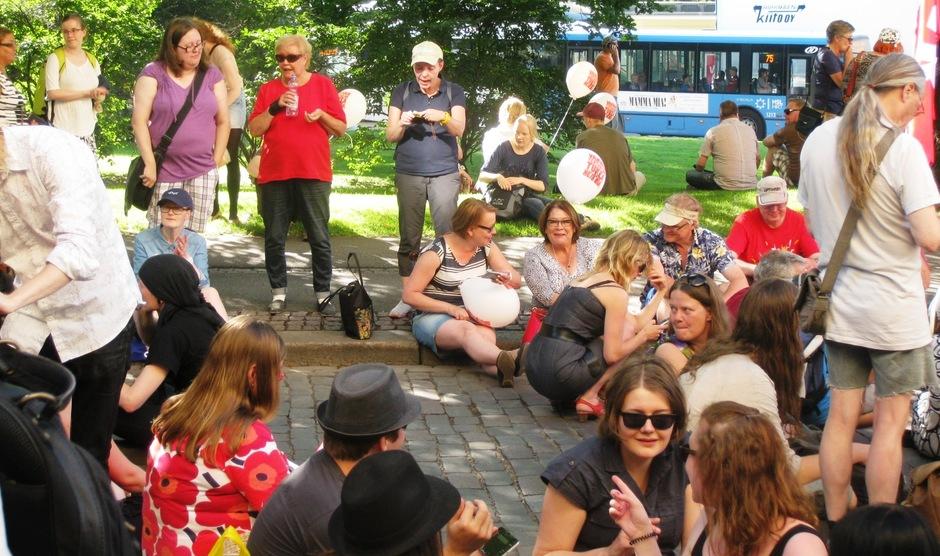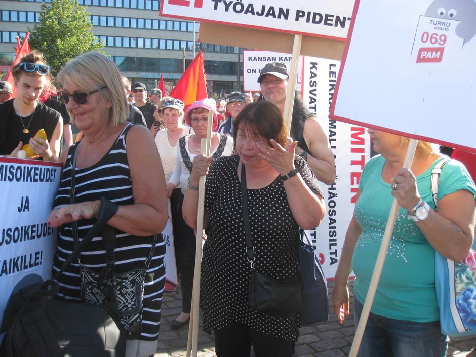 Tarja Puotsaari puhuu Kauppatorin mielenosoituksessa Turussa