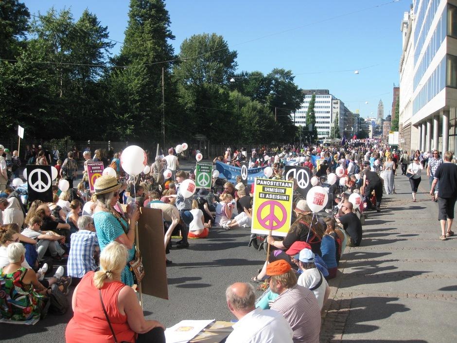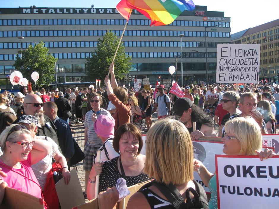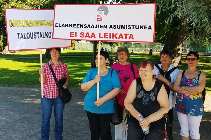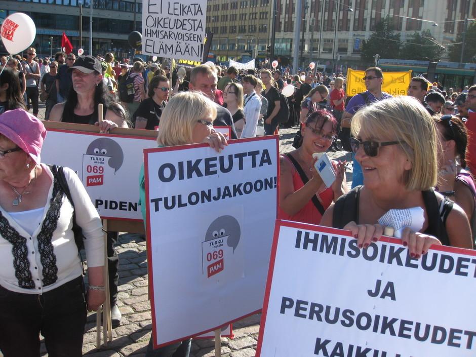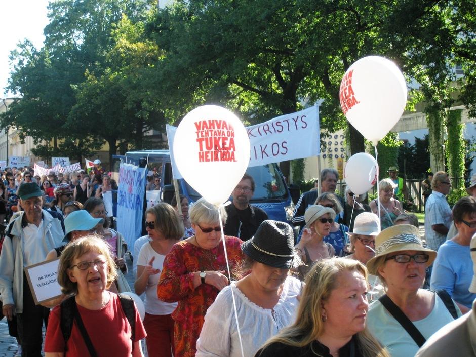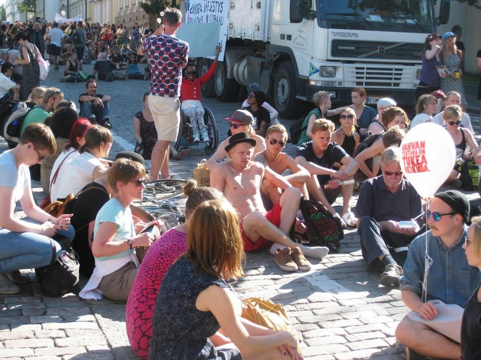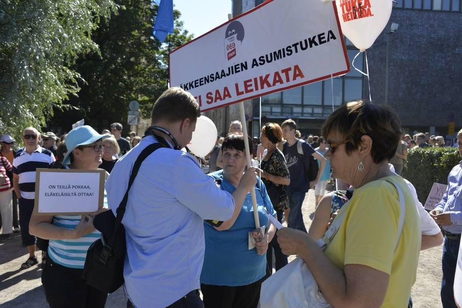Tarja Puotsaari puhuu Kauppatorin mielenosoituksessa Turussa