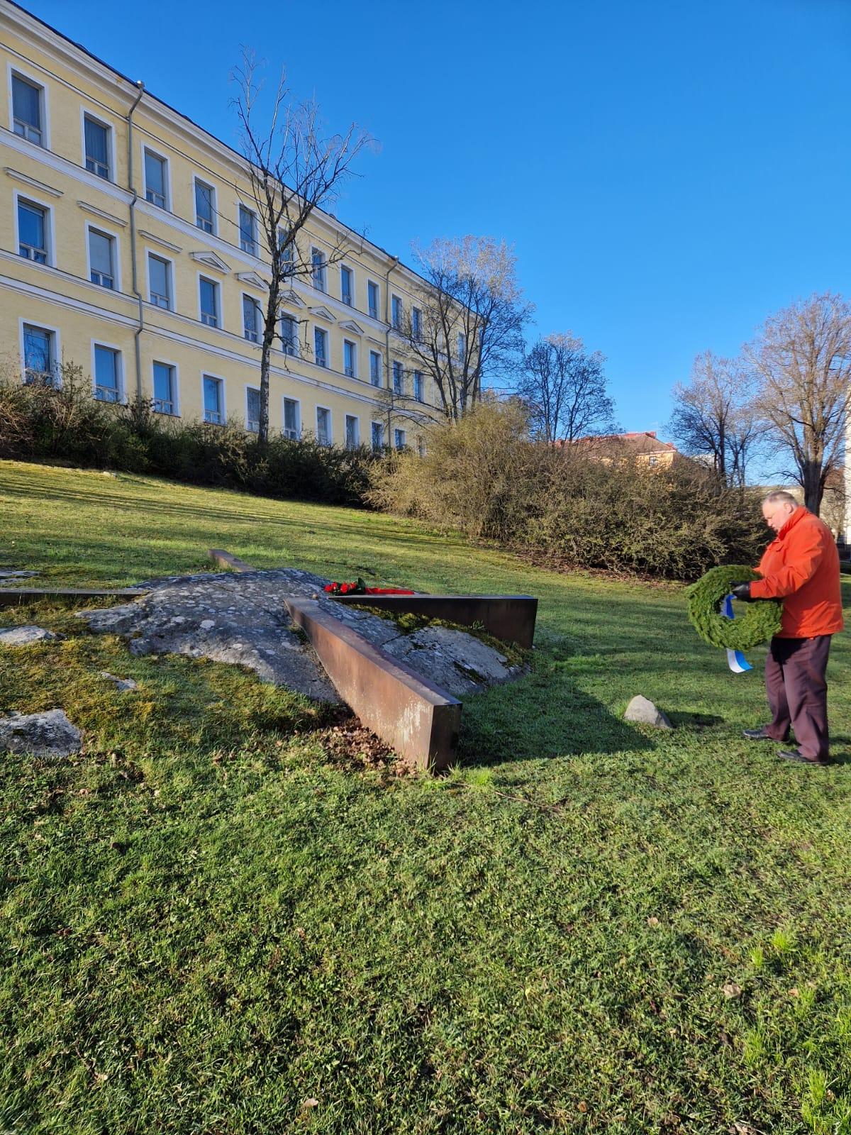 Seppele lasku vakaumuksensa puolesta kuolleiden muistomerkillä 1.5.2023 Tsp jäsen Risto Kruskopf