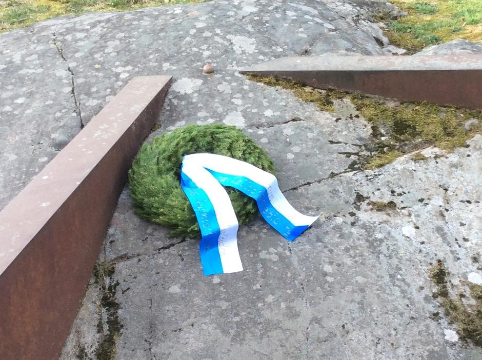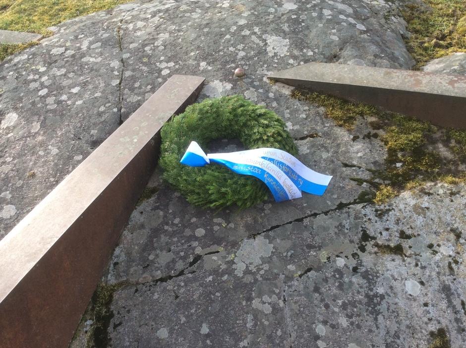 Seppeleen lasku punavankleirin muistomerkille 1.5.2018 Tsp jäsen Risto Kruskopf