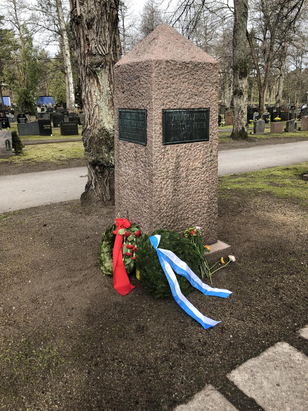 Seppele laskettu punavankleirillä kuolleiden muistomerkille 1.5.2021 Tsp jäsen Risto Kruskopf
