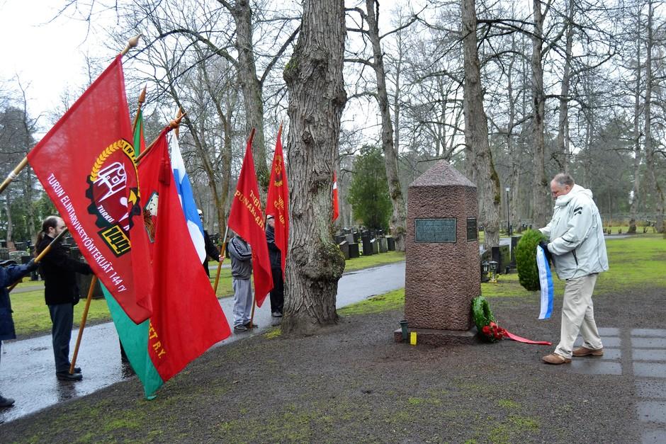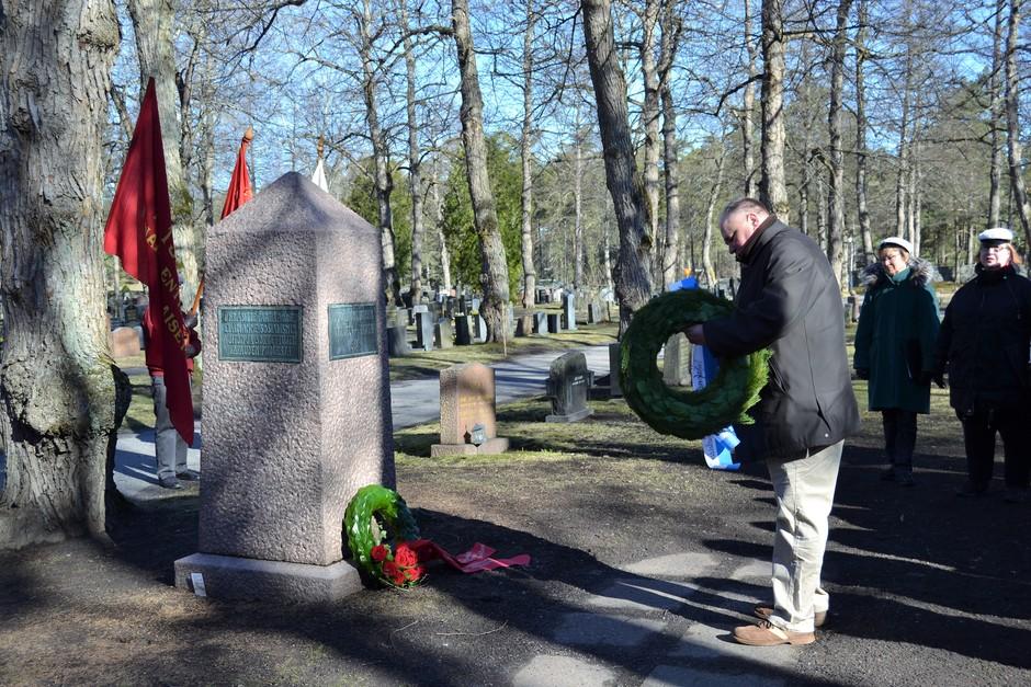 Seppeleen lasku punavankileirin muistomerkillä 1.5.2017 Tsp jäsen Risto Kruskopf