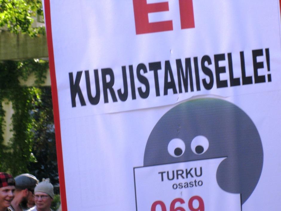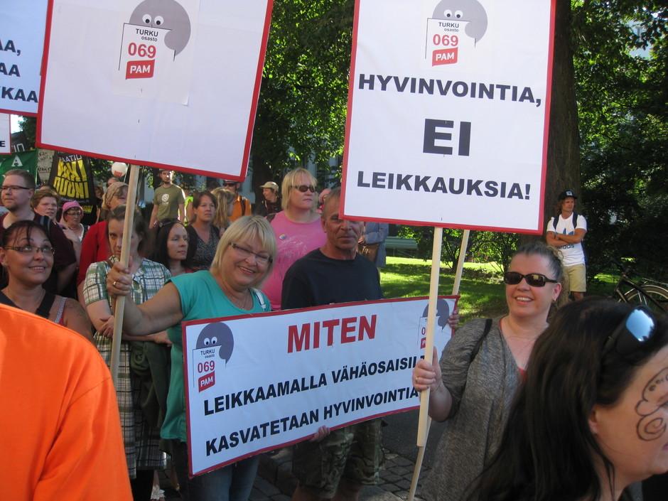 CM Kupittaan luottamusmies Tarja Puotsaari ulosmarssin alla.