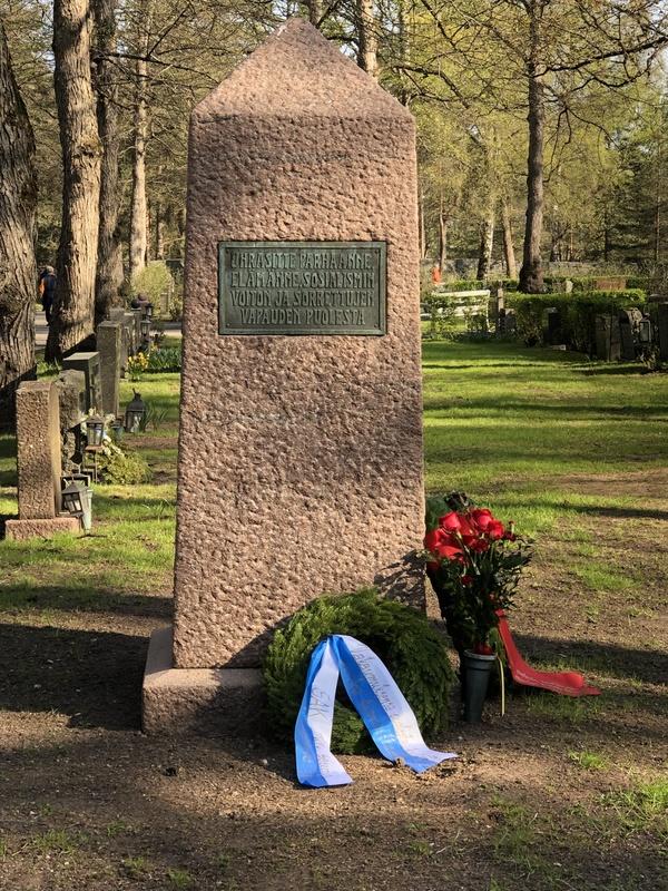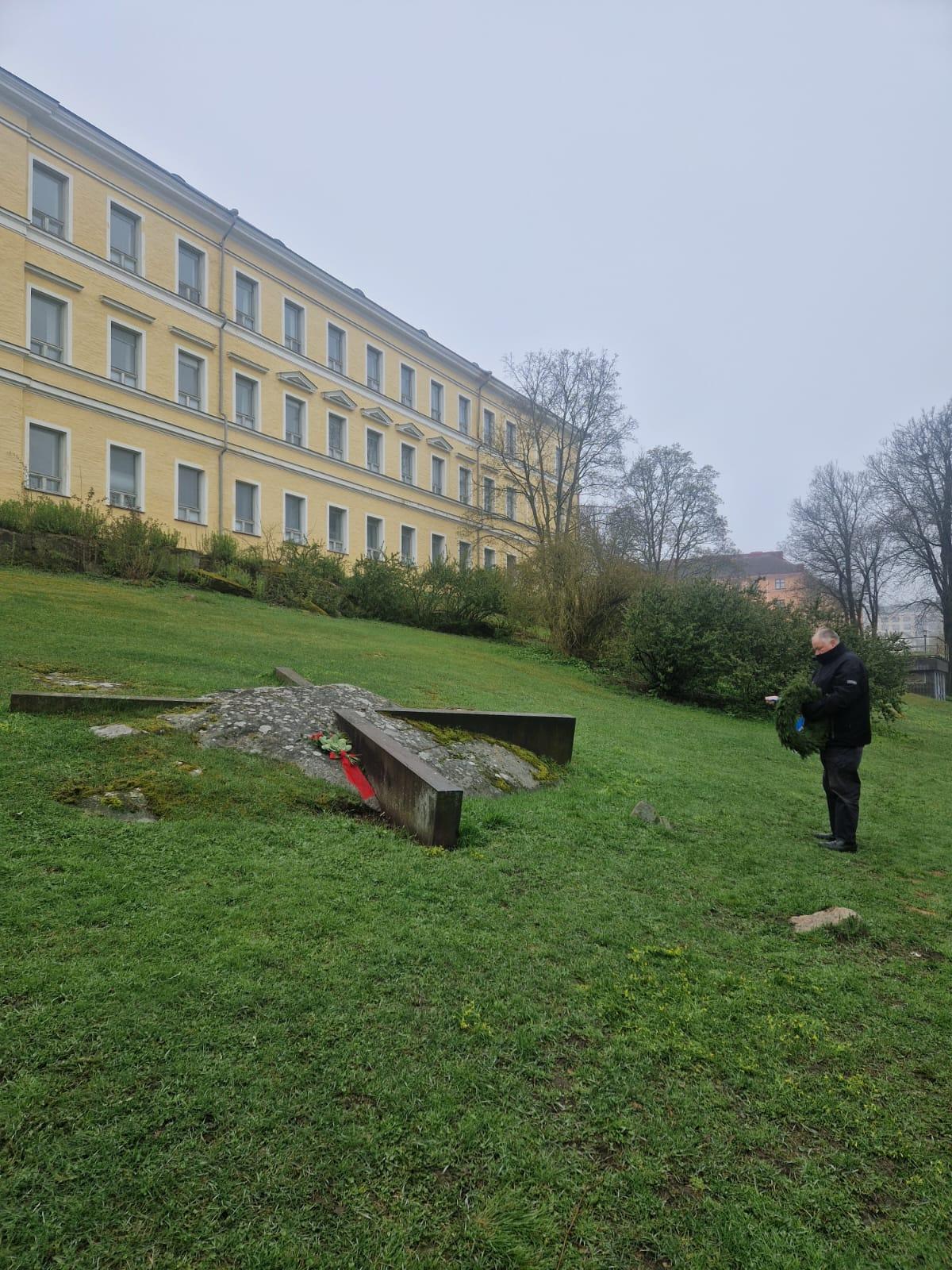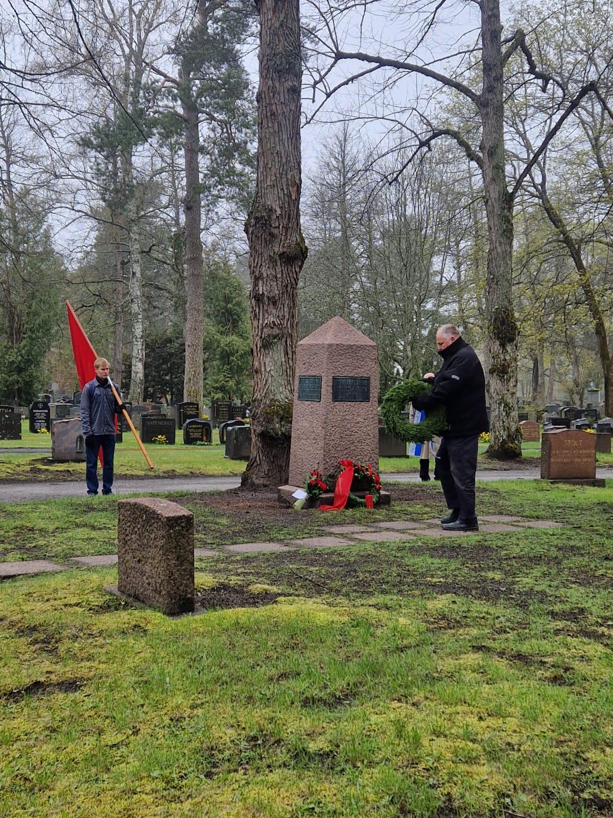 Seppele lasku punavankleirillä kuolleiden muistomerkille 1.5.2023 Tsp jäsen Risto Kruskopf