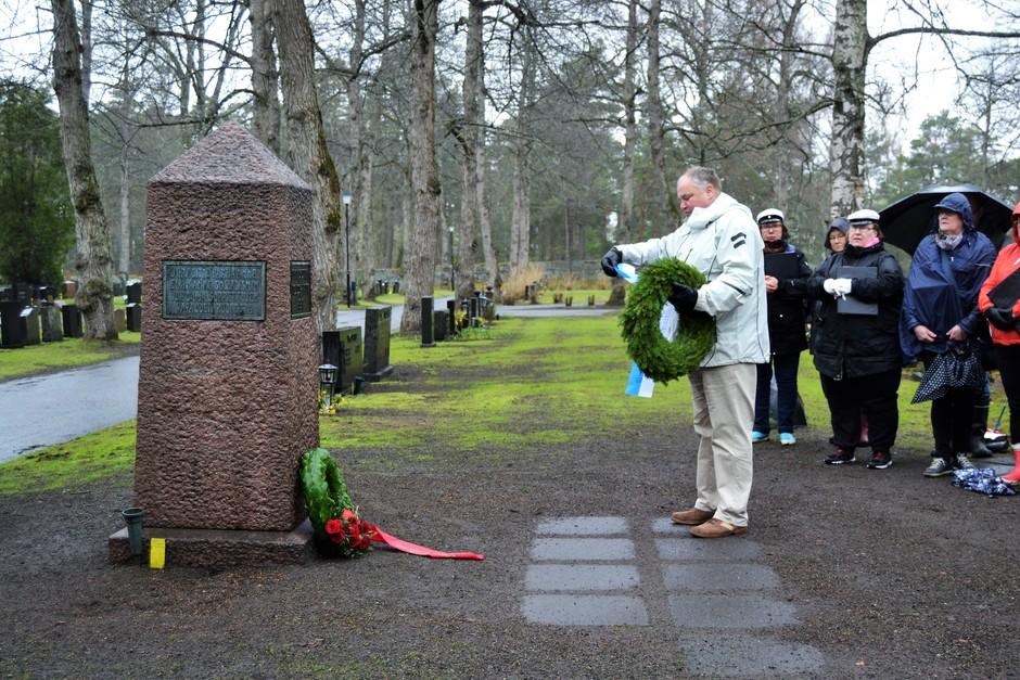 Seppele laskettu vakaumuksensa puolesta kuolleiden muistomerkillä 1.5.2021 Tsp jäsen Risto Kruskopf