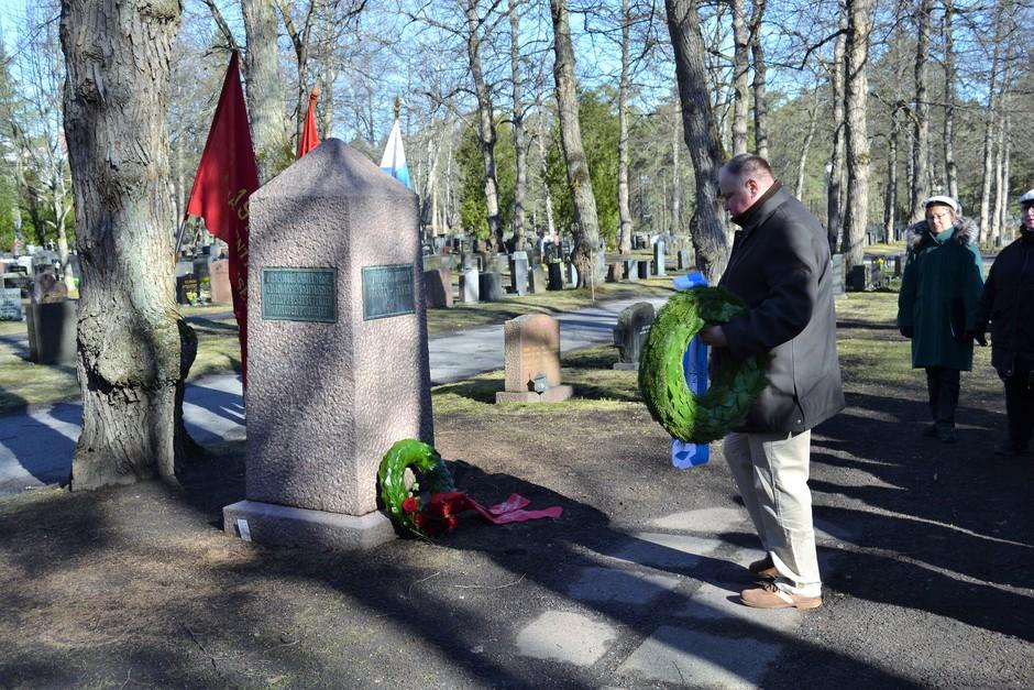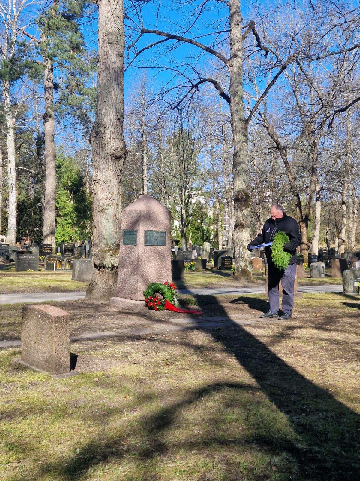 Seppele lasku punavankleirillä kuolleiden muistomerkille 1.5.2024 Tsp jäsen Risto Kruskopf