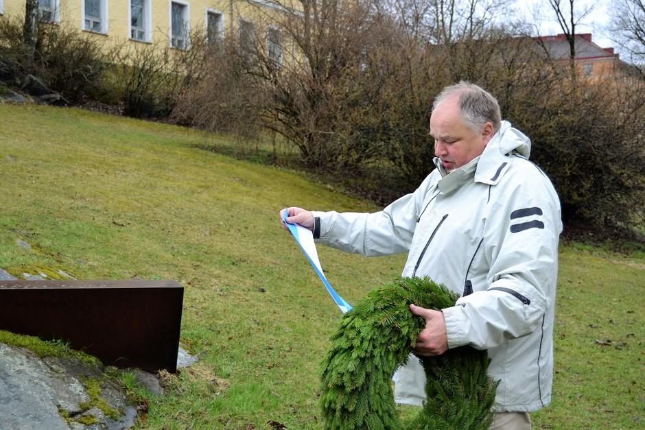 Seppeleen lasku vakaumuksensa puolesta kuolleiden muistomerkillä 1.5.2016. Tsp vpj Pentti Kapanen