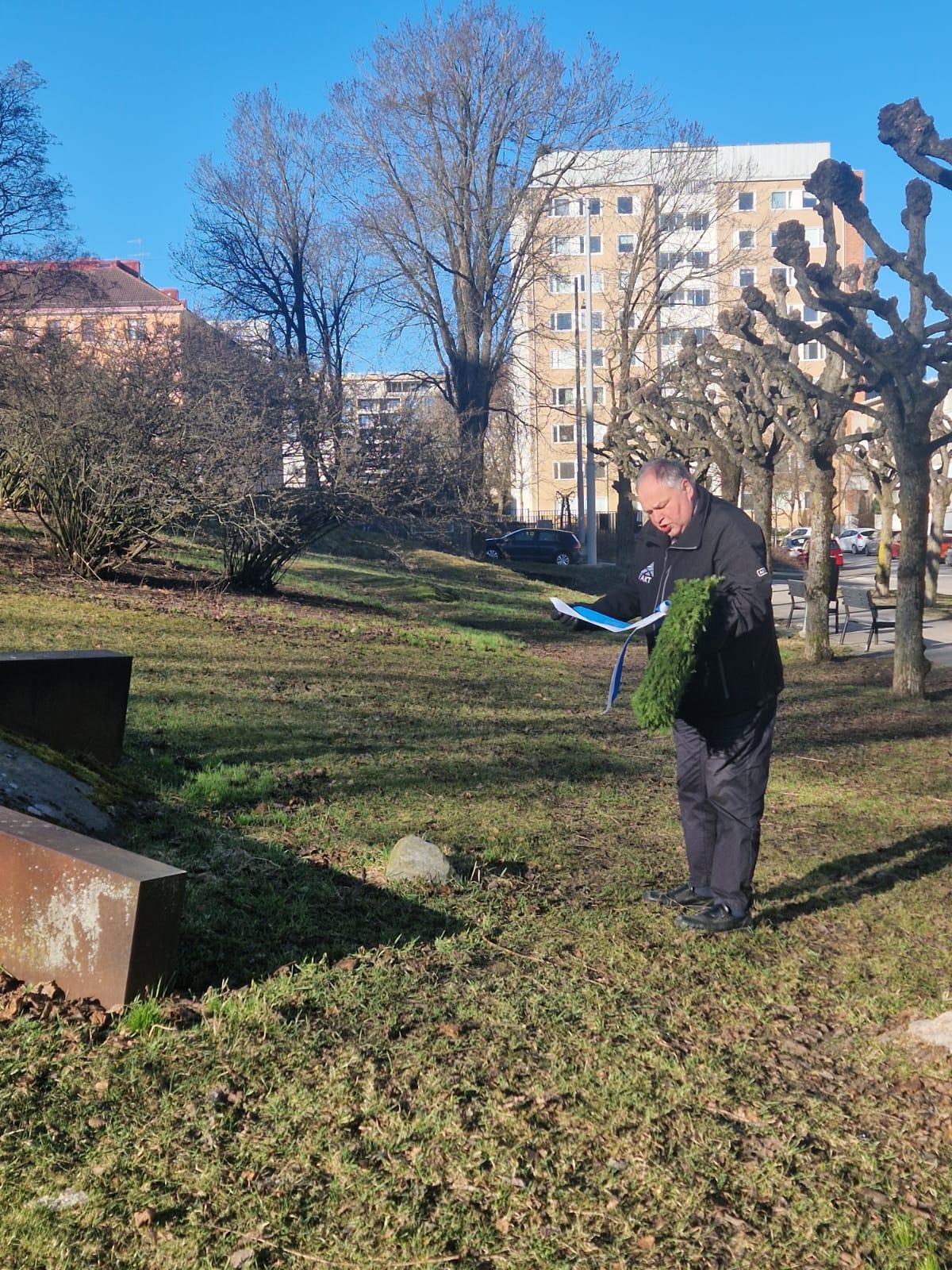 Seppele laskettu vakaumuksensa puolesta kuolleiden muistomerkillä 1.5.2024 Tsp jäsen Risto Kruskopf
