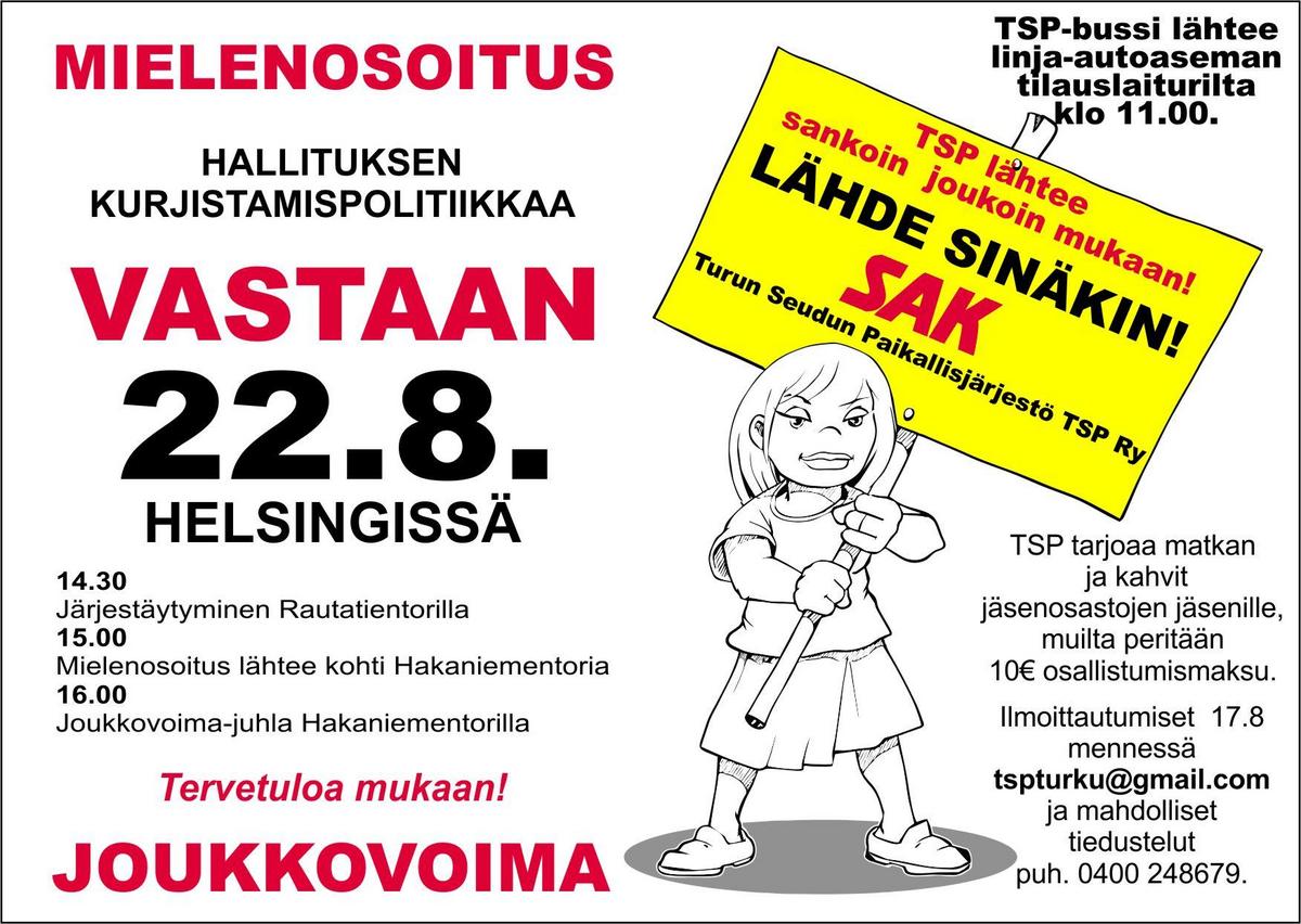 Mielenosoitus hallituksen kurjistamispolitiikkaa vastaan